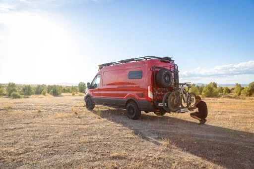 Díky mimořádně velkým popruhům lze bez problémů přepravovat jízdní kola s pneumatikami o šířce až 3". Pneumatiky jsou zajištěny robustními ráčnovými popruhy.